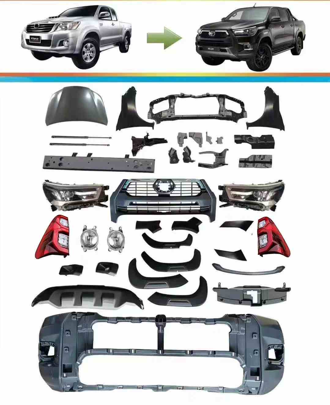 Inicio> Lista de Productos> Accesorios 4x4> Kit de carrocería> 2005-2014 VIGO Actualización 2021 Kit de cuerpo Hilux Rooco para accesorios 4x4